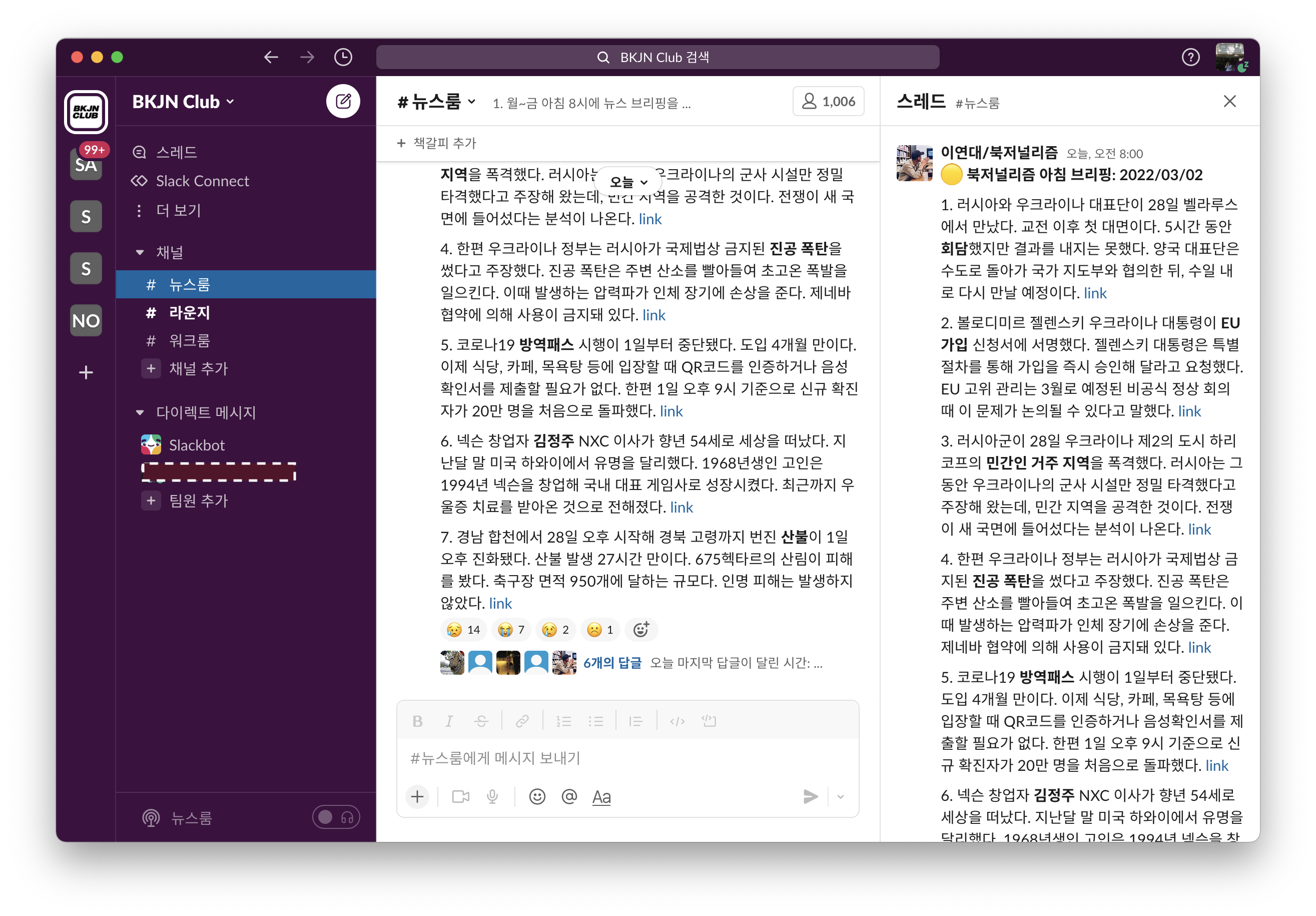 가장 많이 읽는 것은 북저널리즘입니다. 거의 매일 읽습니다. 북저널리즘의 모토는 책(북)처럼 깊이 있게, 뉴스(저널리즘)처럼 빠르게 입니다. 광고로 도배된, 취재와 조사가 아니라 보도자료를 똑같이 베낀 기성 언론사가 싫었습니다. 한편 포털이 제공하는 뉴스에는 ‘목소리’가 없어서 즐기지 않았습니다. 좋은 콘텐츠는 유료입니다. 북저널리즘도 그렇습니다. 저는 미디어의 객관성과 공정성을 믿지 않습니다. 대신 편향(취향)과 관점에 기반해도 얼마든지 ‘옳은’ 정보를 전달할 수 있다고 믿습니다. 재미있게도 제가 미디어를 선택하는 기준은 저 믿음입니다. 정보를 제대로 정리해서 전달할 거라는 믿음입니다. 요즘 북저널리즘은 포캐스트(forecast)로 알아야 할, 알면 도움이 될 뉴스를 조목조목 짚어줍니다. 목요일에는 CCO(chief contents officer: 편집장)의 프라임 레터가 도착합니다. 네이버 오디오 클립으로 북저널리즘 라디오도 발행합니다. 프라임 멤버가 참여할 수 있는 슬랙 커뮤니티도 있습니다. 뉴스가 커뮤니티로 확장하는 장면입니다. 북저널리즘 유료 멤버가 천 명 넘게 참여하고 있거든요. ‘믿음’에 기반한 커뮤니티에서는 댓글, 대댓글은 쓰레드(thread)를 이루며 정보의 묶음이 됩니다. 비난이 들어설 자리가 없습니다. 이연대 대표가 아침 8시에 슬랙의 뉴스룸 채널로 뉴스를 배달하고, 워크룸 채널에서는 오늘 발행한 콘텐츠의 뒷 이야기나 기존에 발행한 콘텐츠의 A/S 정보를 읽을 수도 있습니다. 라운지 채널에서는 공유할 만한 정보를 주고 받습니다. 믿을 수 있는 정보가 오가는 커뮤니티입니다. 저는 ‘신속한 페이크 뉴스’보다 조금 느려도 신뢰할 수 있는 미디어를 읽고 싶습니다. 북저널리즘이 딱 그렇습니다.