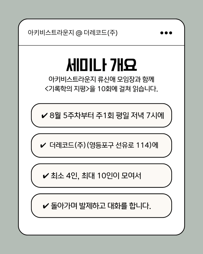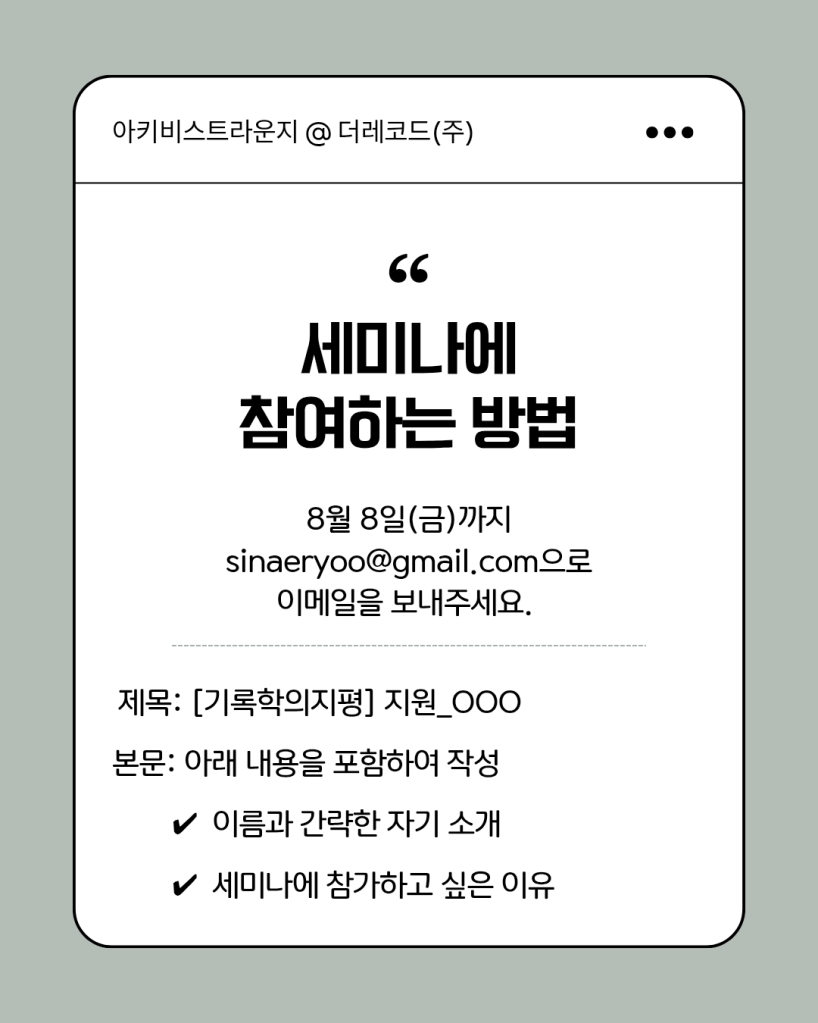 아키비스트라운지의 첫 오프라인 시리즈를 함께 할 여러분을 기다리겠습니다. 🙂